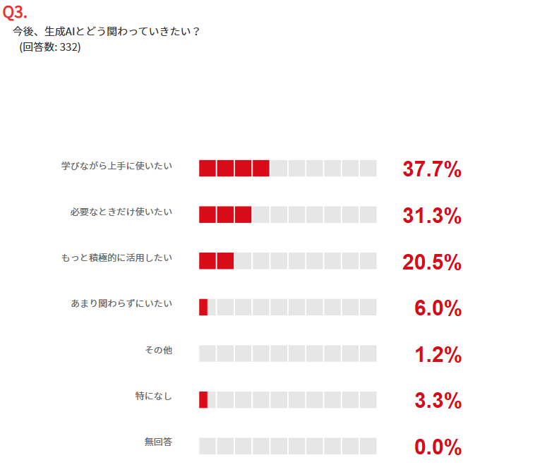 Q3.今後、生成AIとどう関わっていきたい? (回答数: 332)